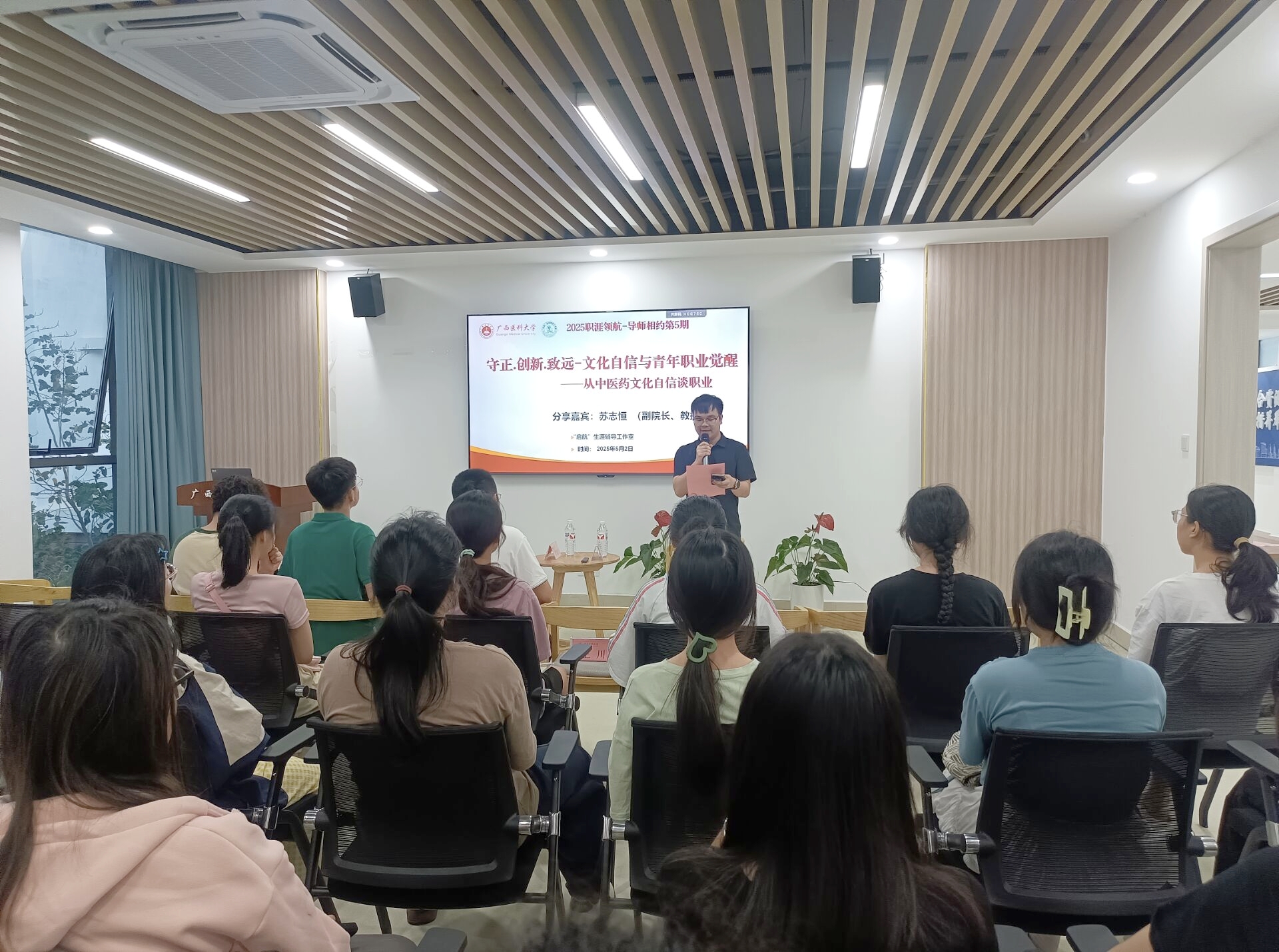 5月2日晚上,英国上市公司365在武鸣校区榕园学生社区三楼举办了“守正·创新·致远—文化自信与青年职业觉醒——从中医药文化自信谈职业”活动。活动邀请到了药学院副院长苏志恒教授为本期活动的主讲嘉宾,学生工作部(处)、心理健康与咨询中心、体育与健康学院以及各学院师生参加本期活动。
